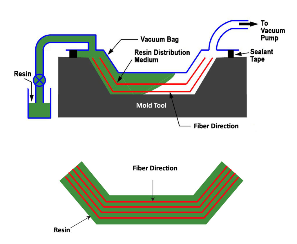 Vacuum Assisted Resin Transfer Molding also provides fiber orientation contoured to the shape of the part. If a part is machined from a flat composite sheet, fibers are only oriented in the x-y plane, which can create weak spots in a 3-D contour.